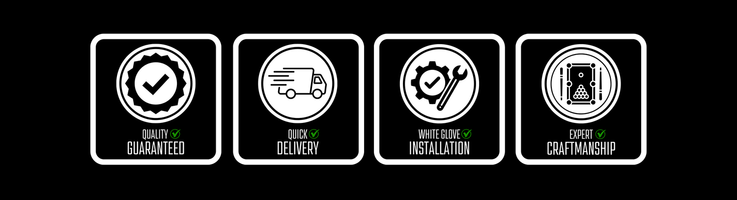 Our pool tables are made by the best names around the globe. This means that they are made to last a lifetime. Using only the finest materials, we stand by the quality of all our products and no matter which one you choose, we are confident you will absolutely LOVE your table.